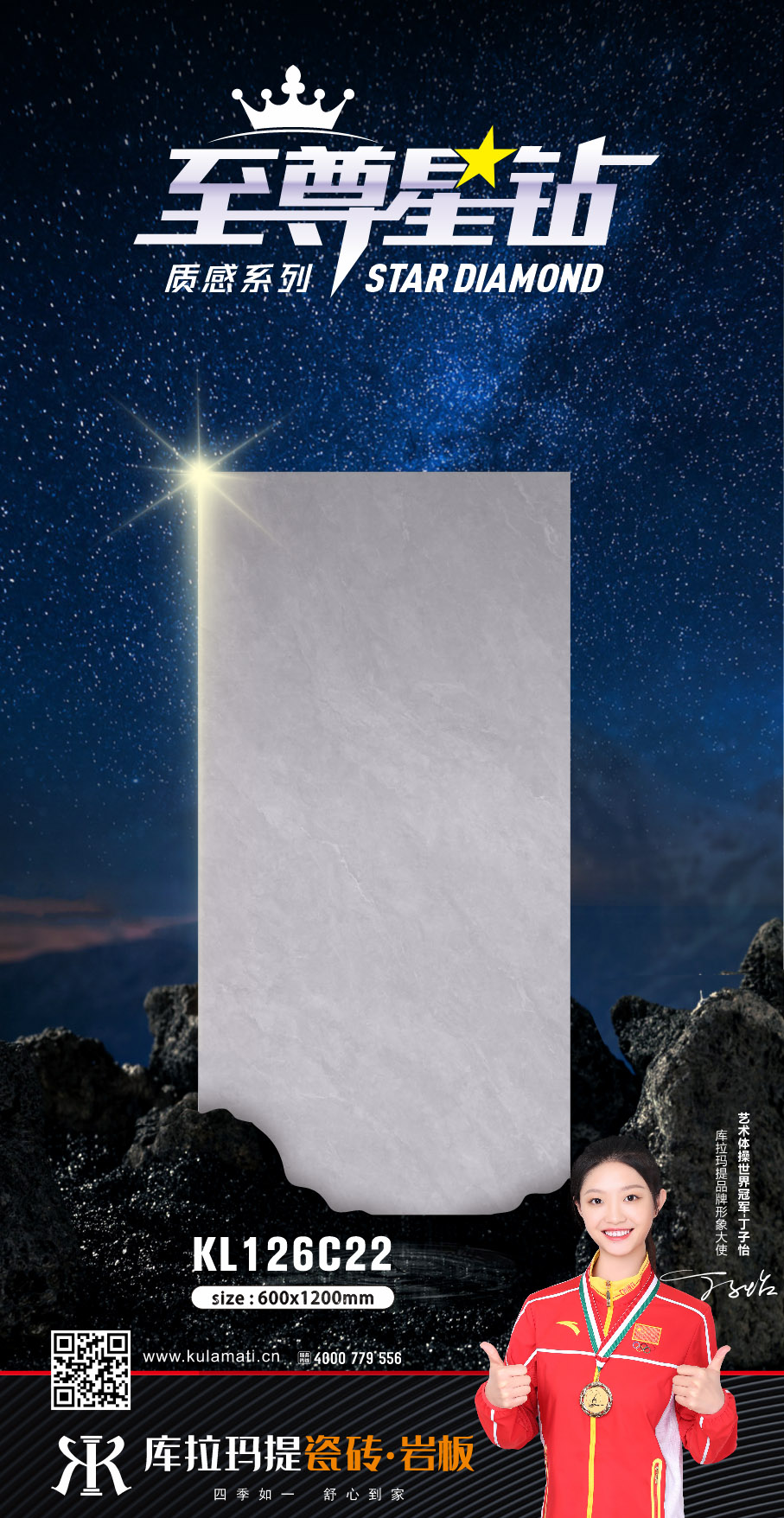 釉面工艺:库拉玛提品牌依托人类探索自然与星空之不屈精神为灵感,借助自身强大的生产工艺,给予砖体釉面层达5层星钻釉料,让砖面性能全面优于传统瓷砖,砖体浑然天成,表面星光闪烁夺目,能够抵御超强油渍、污渍的侵袭,并采用集团独有的领先工艺,萃以砖体釉面的超耐磨金刚釉料,让砖面耐磨莫氏硬度达6级以上,无惧刮磨;匠心花色精选木纹、石材、素奢纹理,让家居生活从此更加精彩夺目。